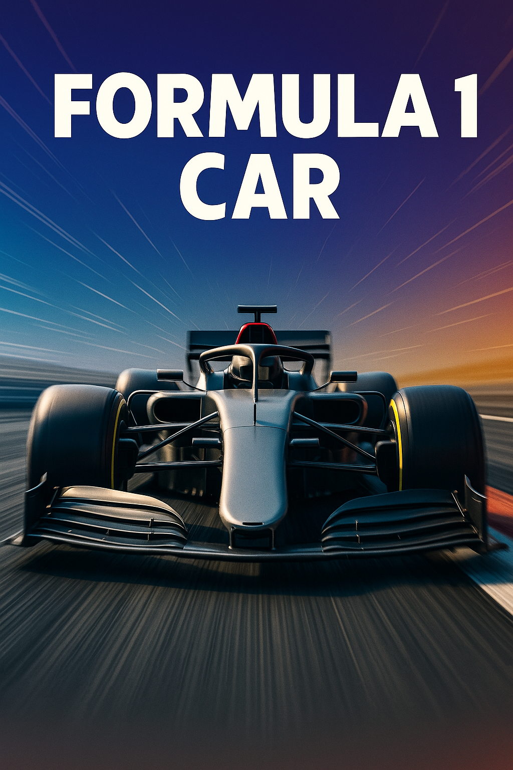 A powerful Formula 1 car captured from a front view, showcasing speed and motion on the racetrack. The background features a smooth gradient, enhancing the dynamic feel.