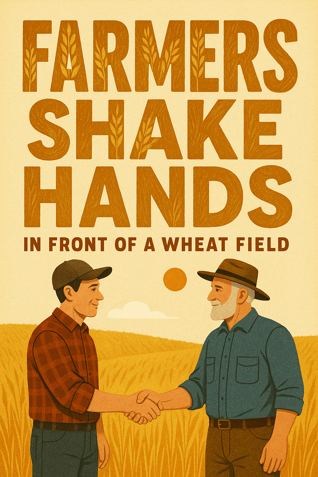 Illustrative Graphic of Farmers Shaking Hands in Wheat Field