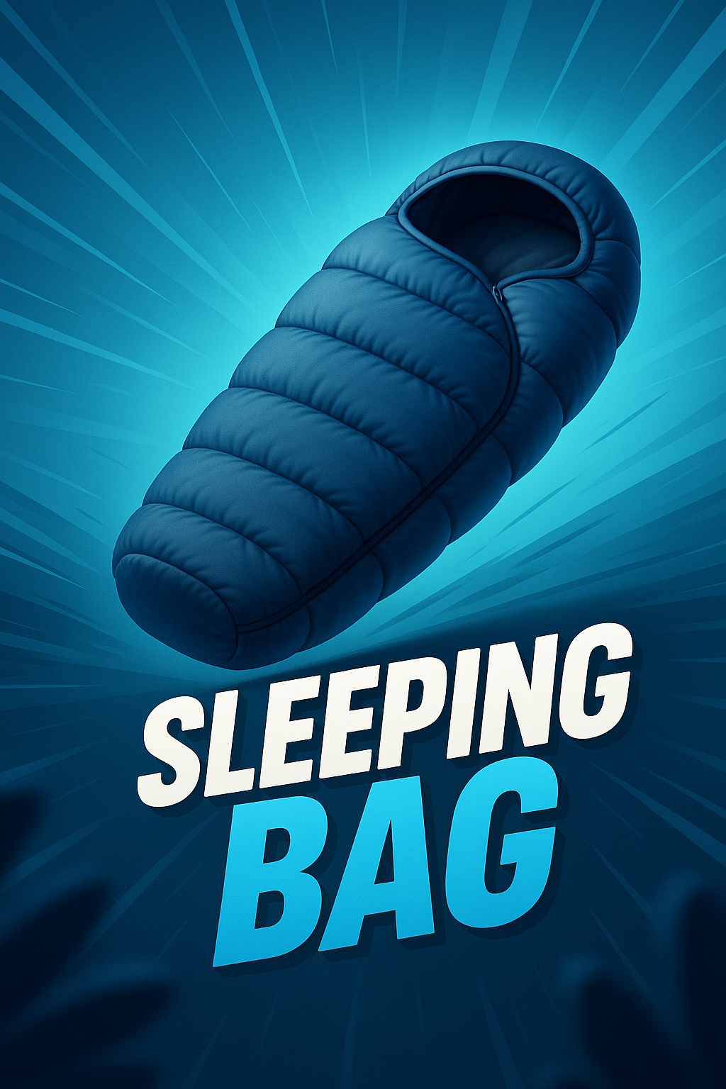 /Collection: /by davooda/Type: PNG/A vibrant illustration of a sleeping bag against a dynamic gradient background. The design features bold text and rays emanating from the center, creating an engaging visual effect.
