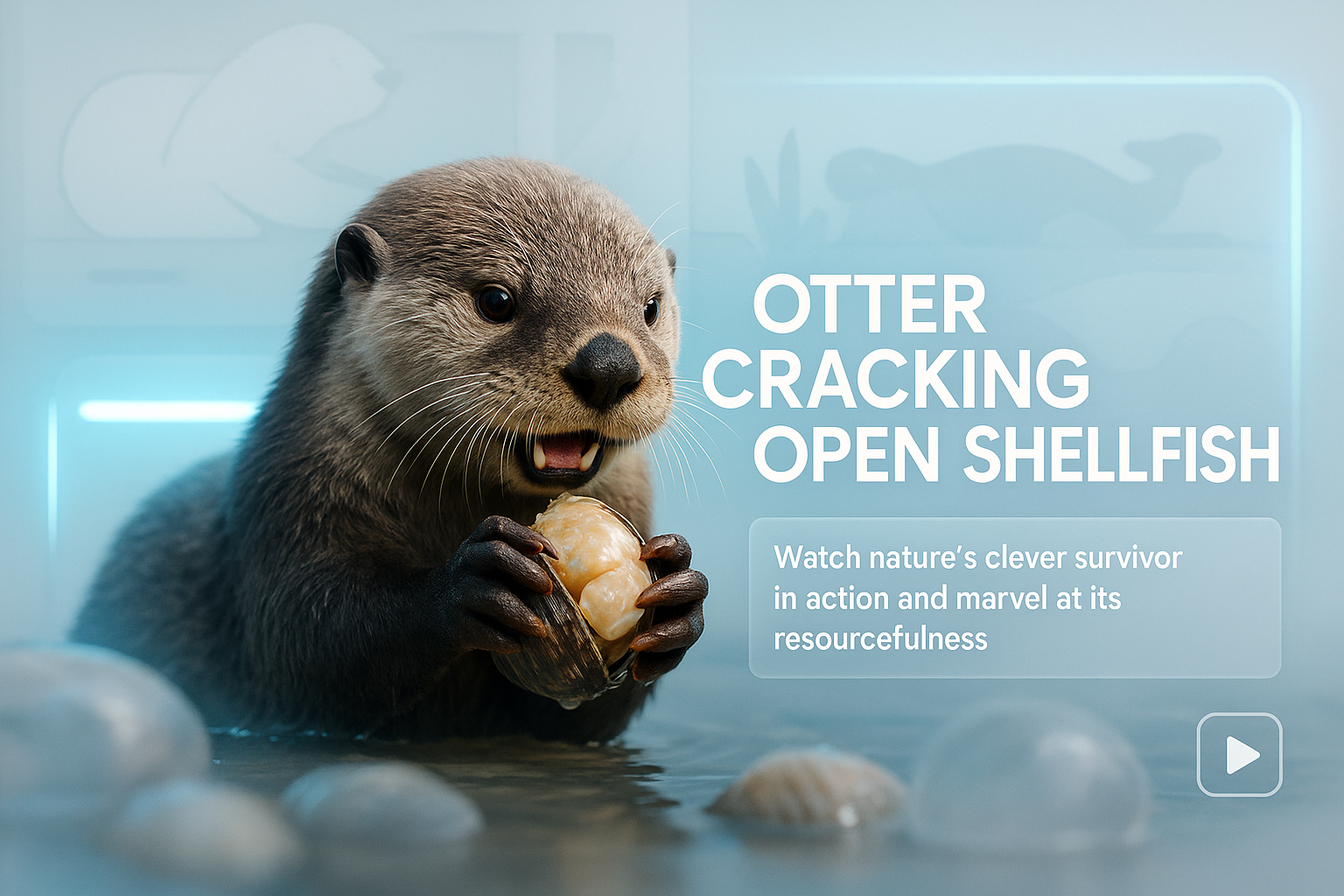 /Collection: /by davooda/Type: PNG/An engaging wildlife photograph showcasing an otter cracking open shellfish, highlighting its cleverness and resourcefulness. Ideal for educational content and nature documentaries.