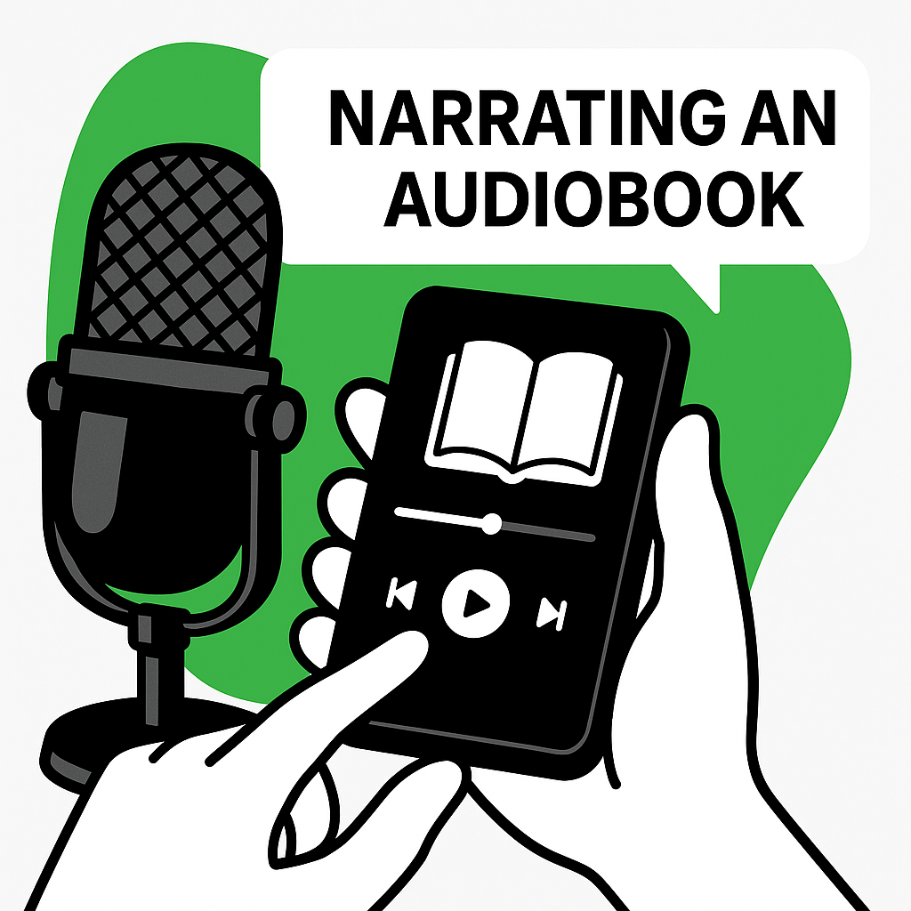 Illustration of Audiobook Narration Concept with Microphone and Phone