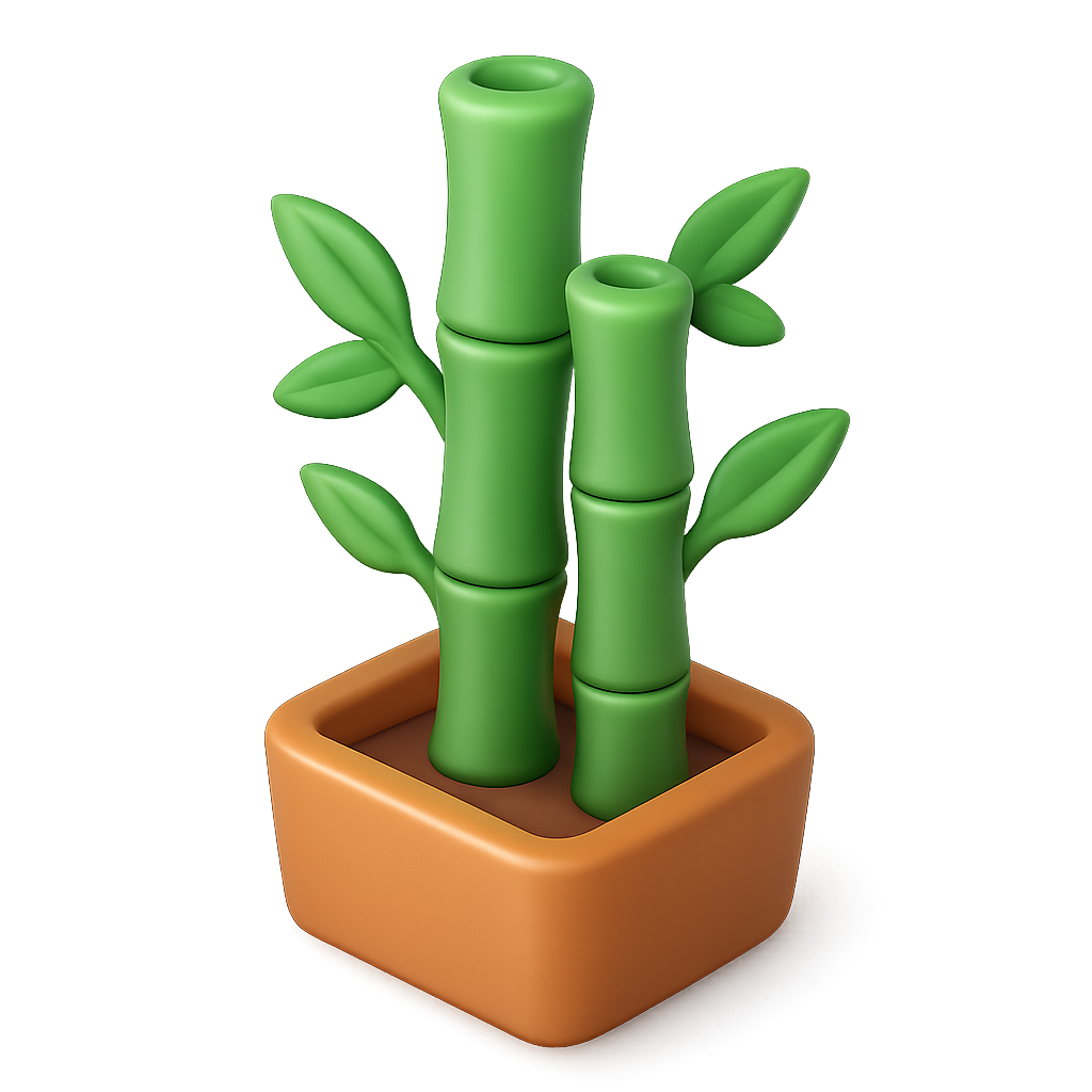 Stylized 3D Bamboo Icon in a Pot with Greenery