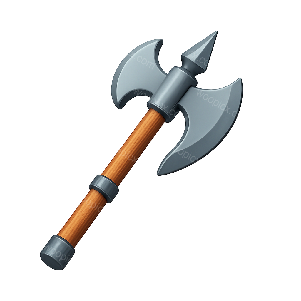 A 3D-rendered halberdier weapon icon featuring a dual-headed axe design. The weapon is presented in a three-quarter view with a transparent background, showcasing a wooden handle and metallic accents.