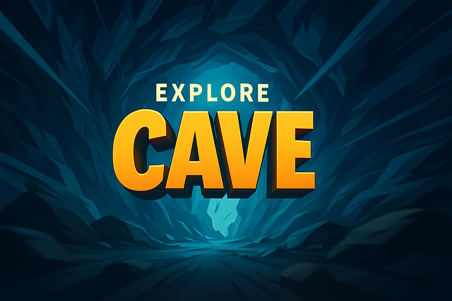 /Collection: /by davooda/Type: PNG/An illustrated cave scene featuring bold typography with the word 'CAVE' highlighted. The design has a smooth gradient background and dynamic lines radiating from the center.