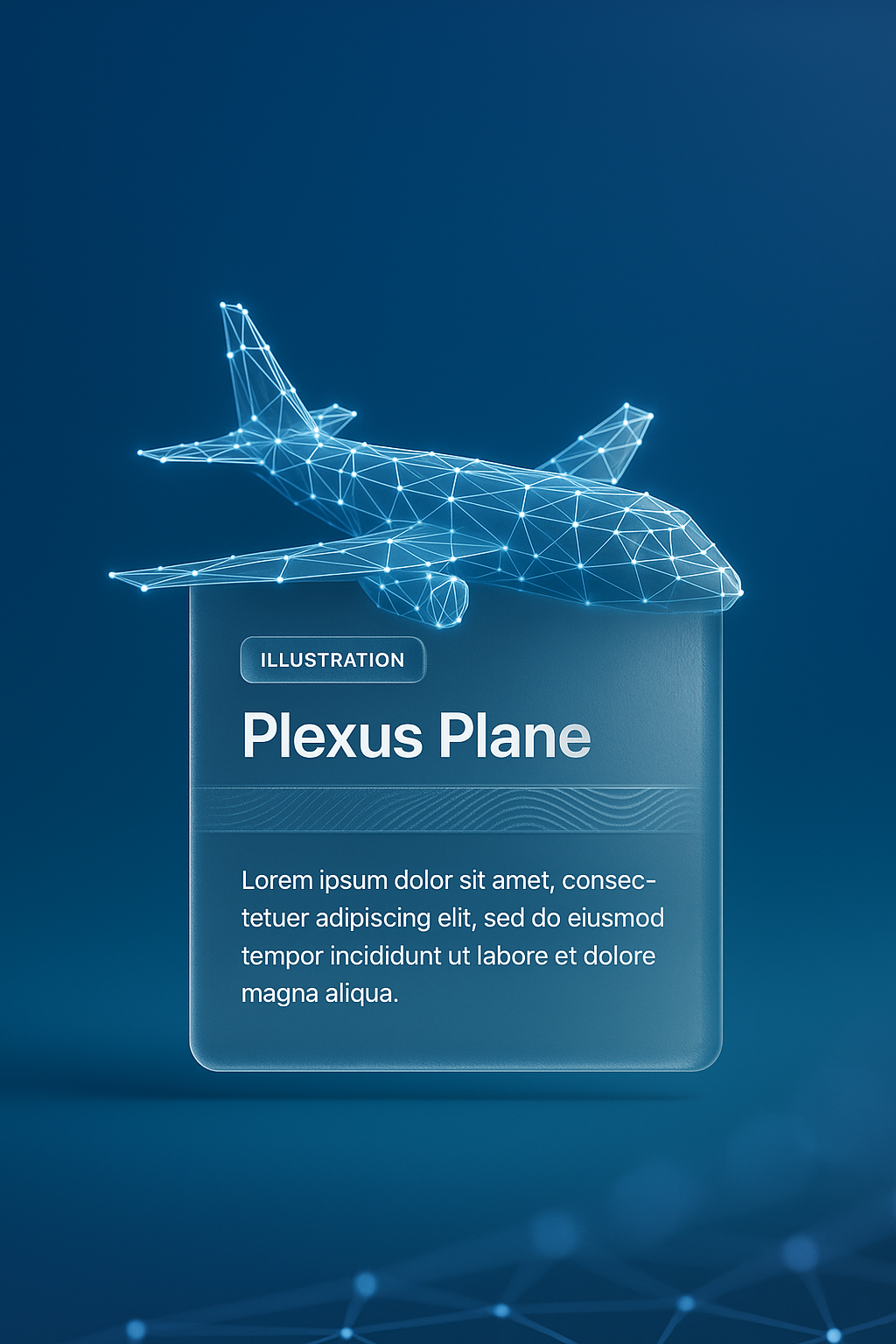 /Collection: /by davooda/Type: PNG/A 3D illustration of a plexus plane set against a smooth gradient background. The visual features a translucent text block that integrates seamlessly into the design, complete with a title and supporting graphics.