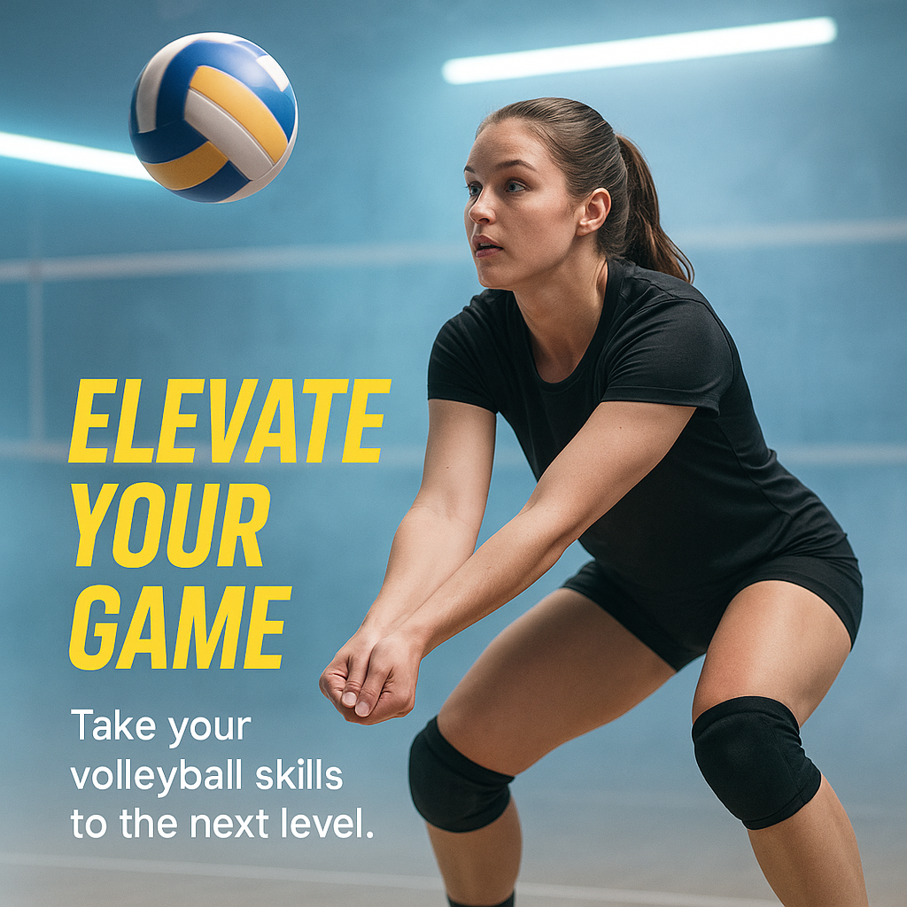 Engaging sports promotional image featuring a female volleyball player in action, designed to inspire athletes to enhance their skills. Suitable for sports training programs and advertisements.