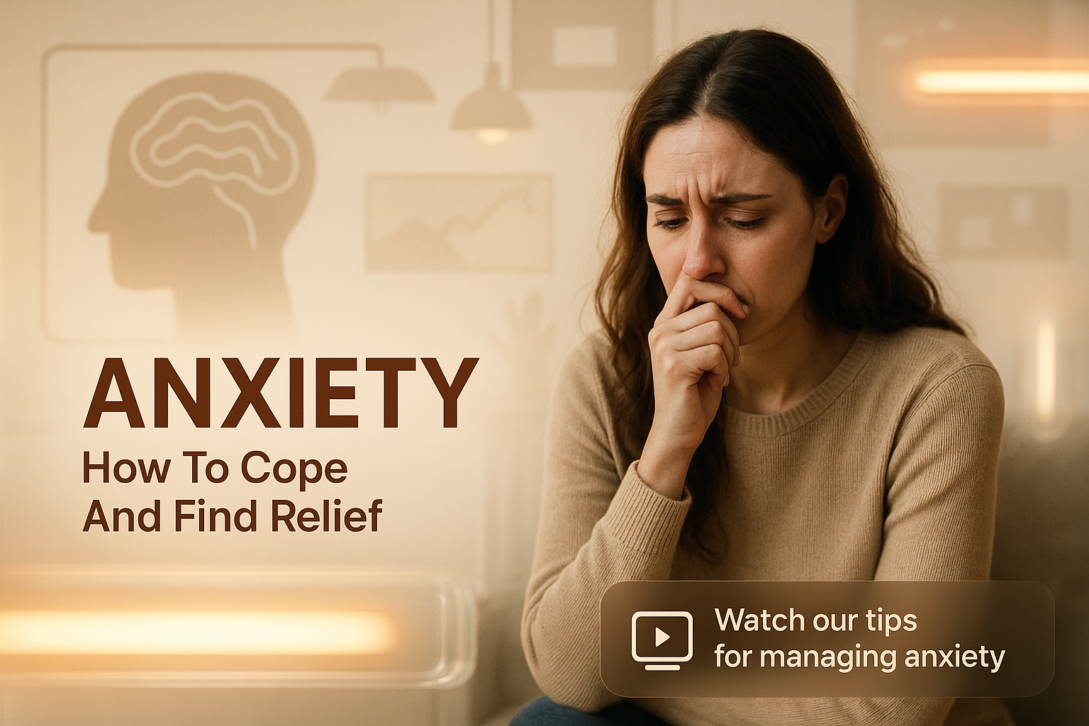 /Collection: /by davooda/Type: PNG/Informative graphic focused on managing anxiety, featuring a woman in a contemplative pose. This image serves as a guide for individuals seeking relief from anxiety, suitable for mental health resources.