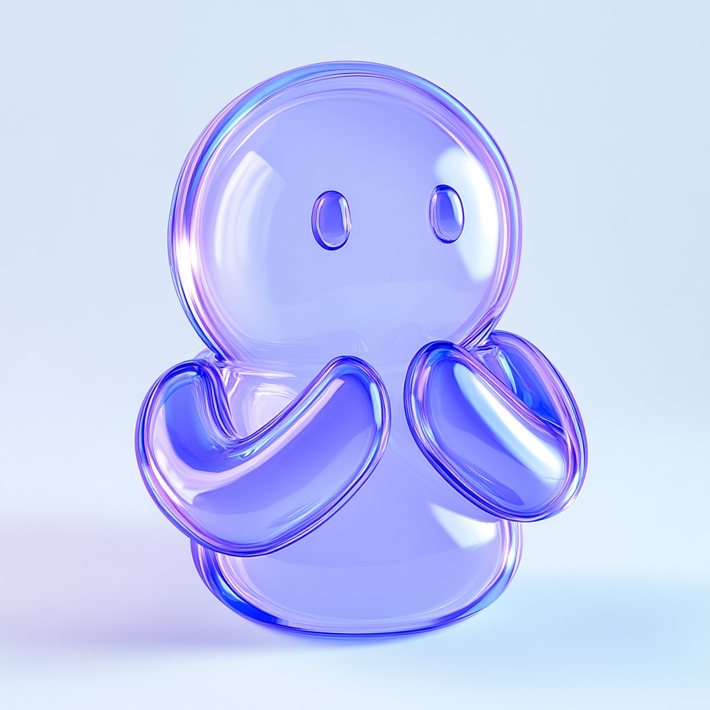 3D Cartoonish Character in Transparent Blue Design