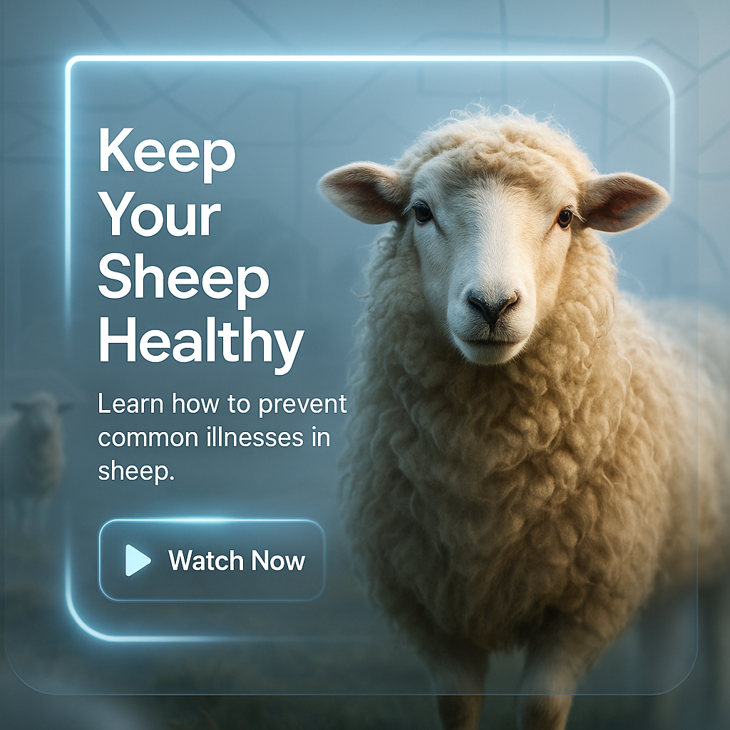 Engaging social media post featuring a sheep, aimed at educating viewers on preventing common illnesses in sheep. The modern design attracts attention and encourages action.