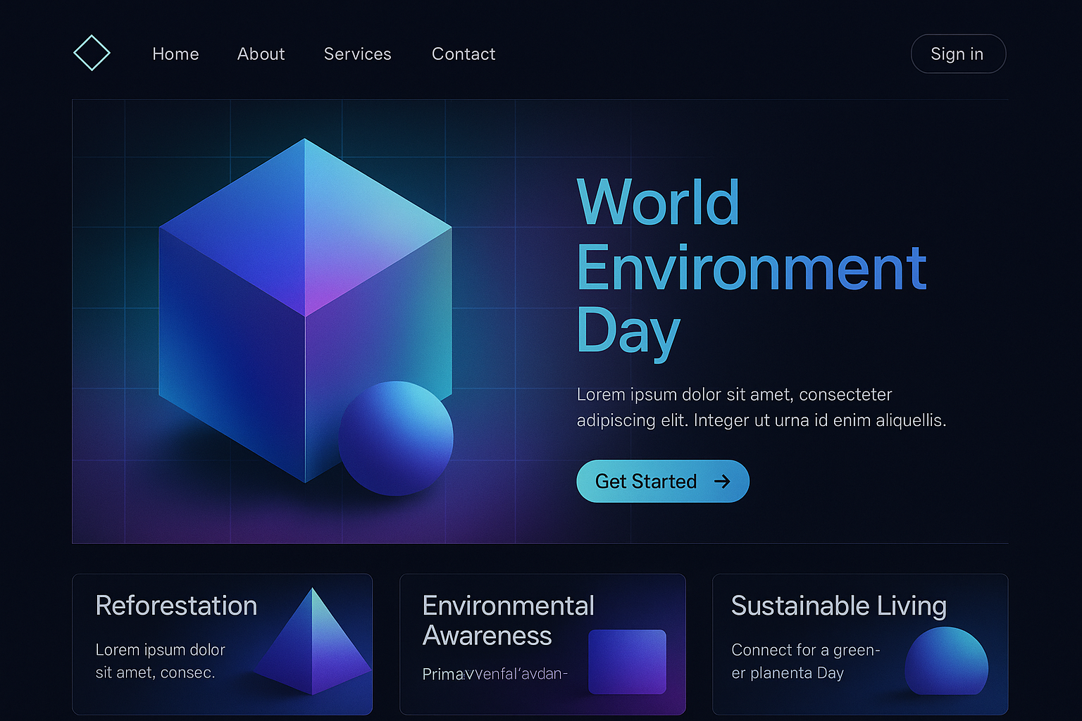 Futuristic Nature Landing Page Design with Geometric Elements