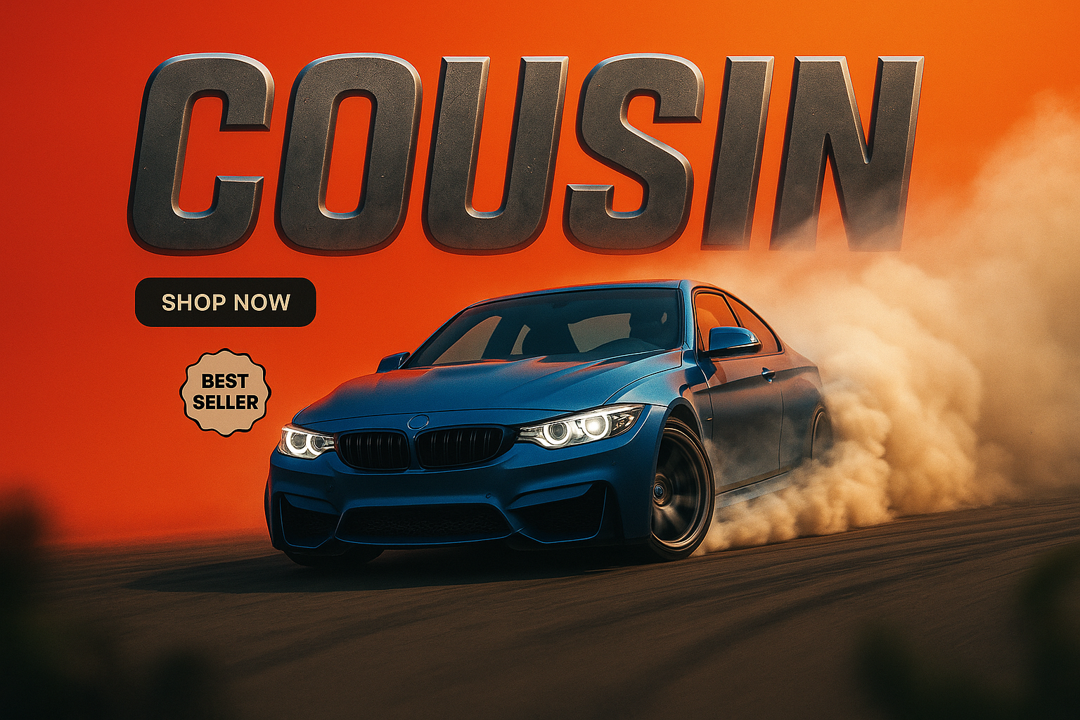 /Collection: /by davooda/Type: PNG/This image showcases a high-performance car in motion against a vibrant, warm background. It's designed for promotional use, targeting automotive enthusiasts.