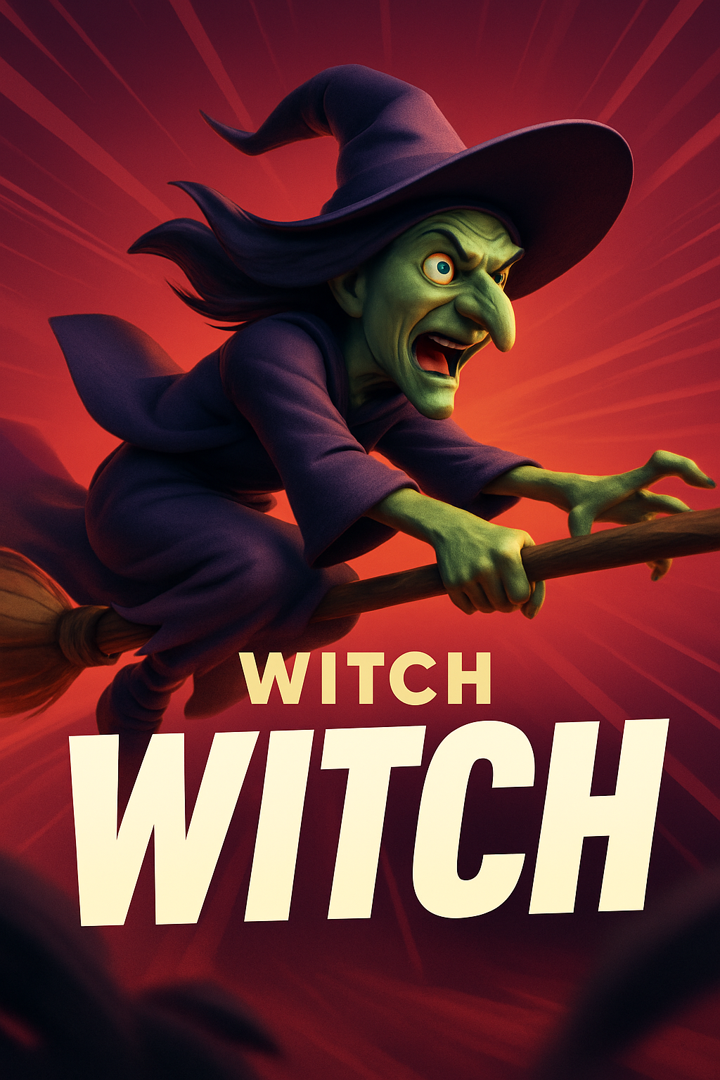 A vibrant illustration of a witch flying on a broomstick, showcasing dynamic lines radiating from the center. The background features a smooth gradient, enhancing the energy of the scene.