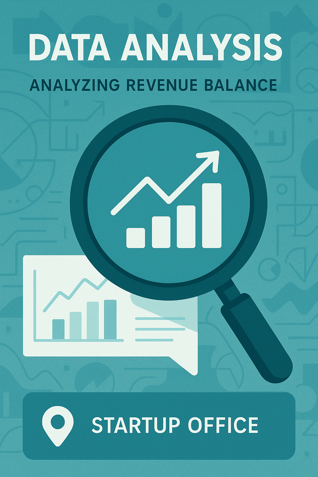 Informative infographic depicting data analysis concepts with a magnifying glass focusing on revenue metrics, ideal for corporate presentations and reports.