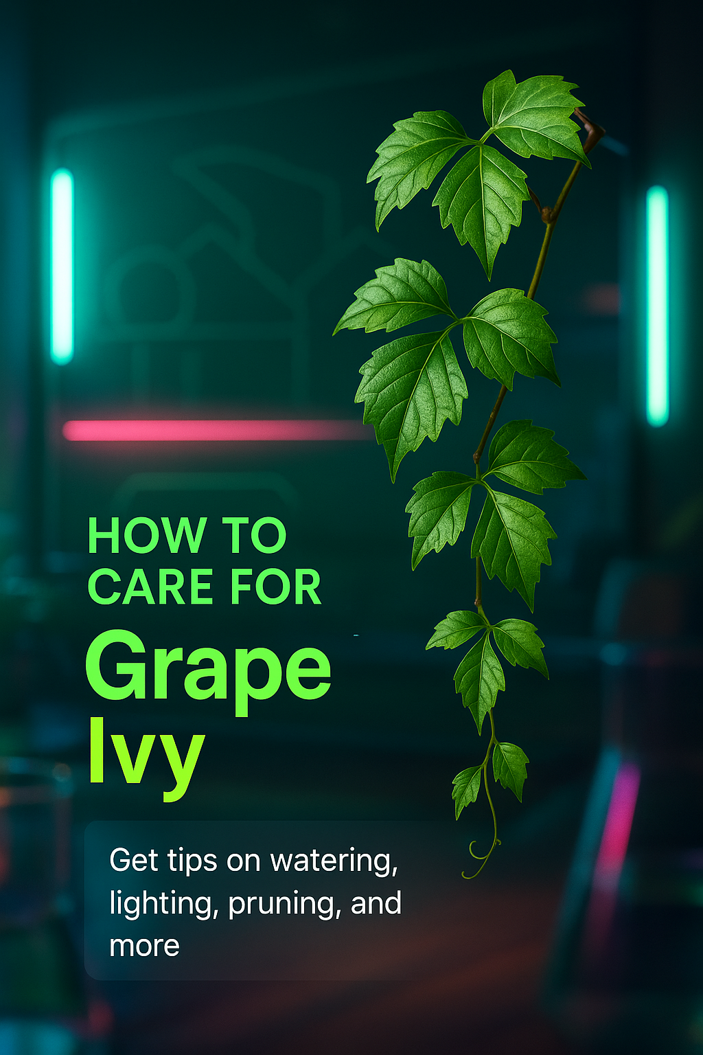 Visually engaging graphic providing care tips for Grape Ivy, featuring vibrant colors and botanical illustrations suitable for gardening enthusiasts.