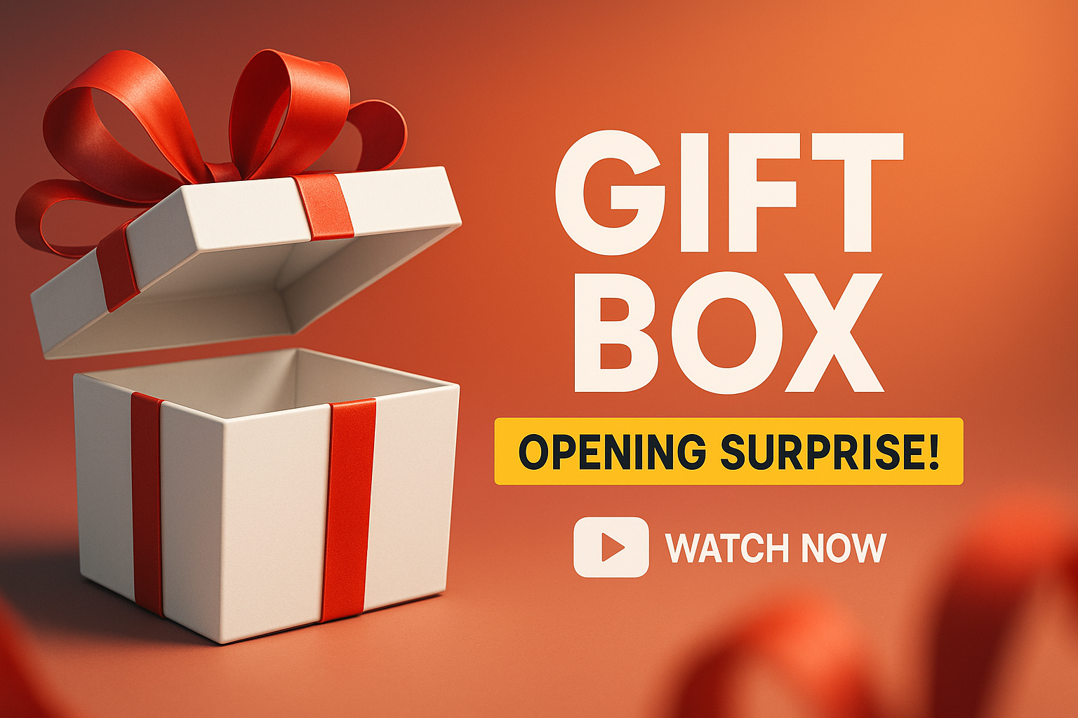 Vibrant 3D graphic featuring an opened gift box with a bow, designed for promotional content. Ideal for social media or video thumbnails.