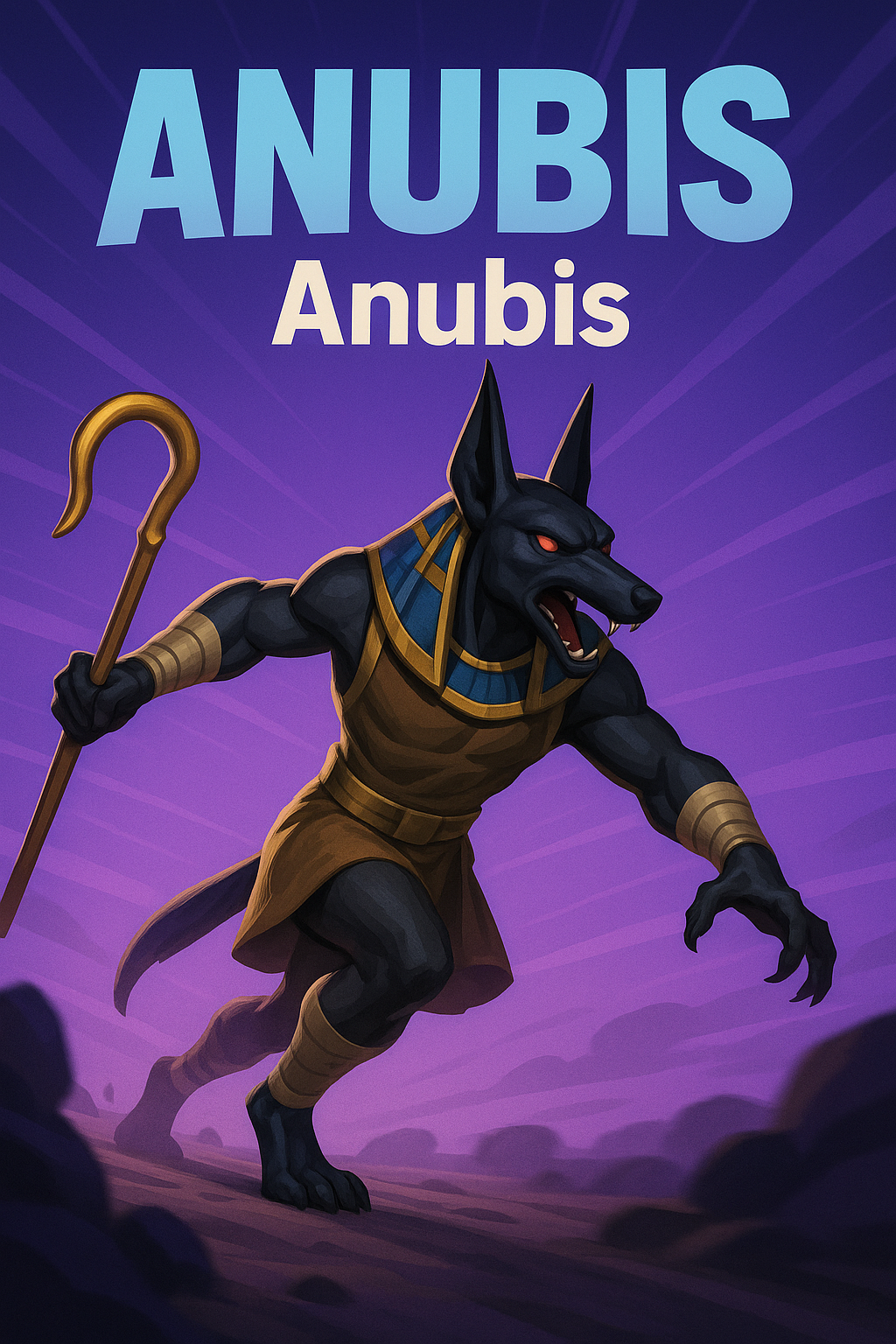 /Collection: /by davooda/Type: PNG/This is a digital illustration of Anubis, featuring a stylized character design. The image uses vibrant colors and a dynamic pose, ideal for gaming or mythology-themed content.