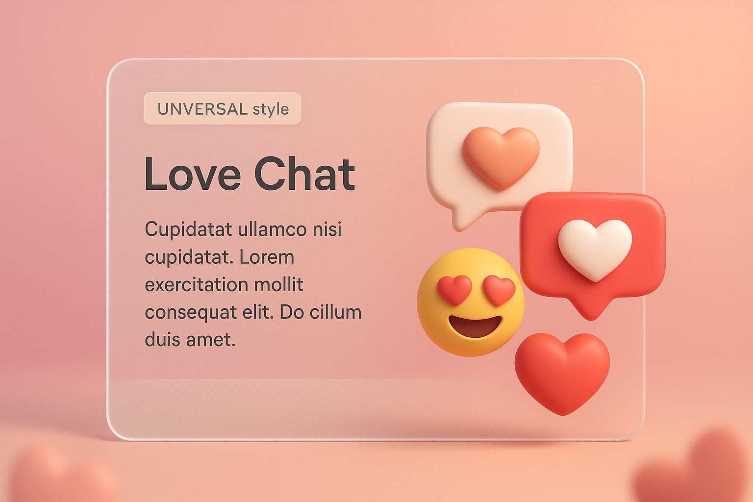/Collection: /by davooda/Type: PNG/A vibrant 3D illustration featuring social media likes and emoji icons, including hearts and speech bubbles. Perfect for Valentine's Day themes, set against a soft gradient background.
