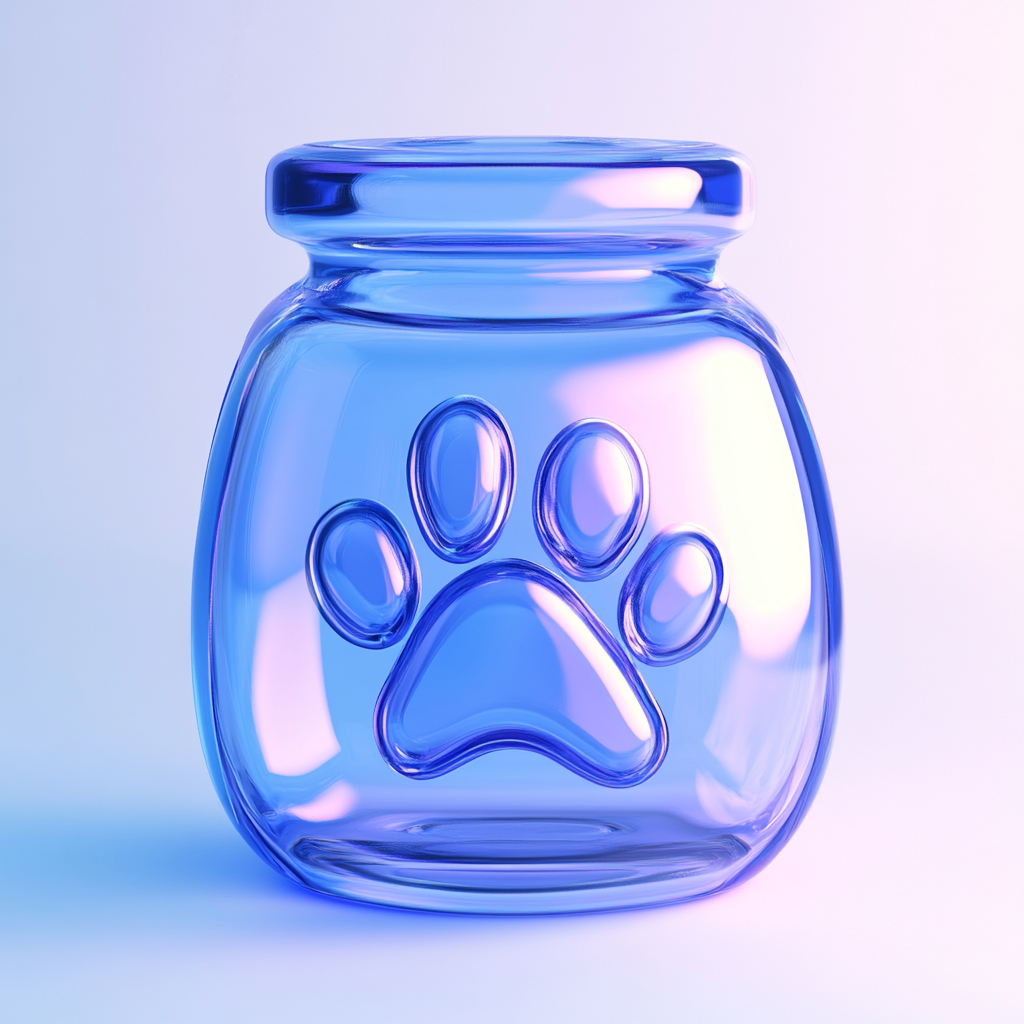 A modern glass jar featuring a paw print design, rendered in a soft blue hue. Ideal for pet-related products or branding, this image combines simplicity with a playful touch, appealing to pet owners.