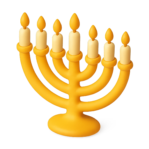 Stylized illustration of a yellow menorah with eight candle holders, ideal for festive or cultural celebrations, designed with a modern aesthetic.