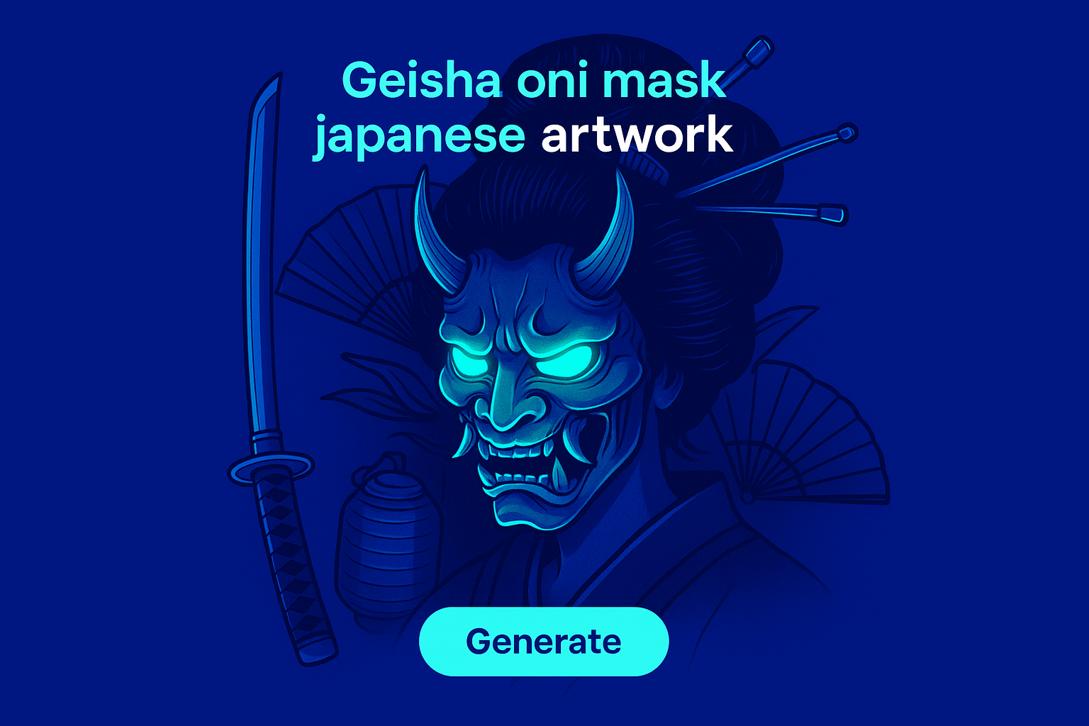 Vibrant Glowing Geisha Oni Mask Artwork Illustration
