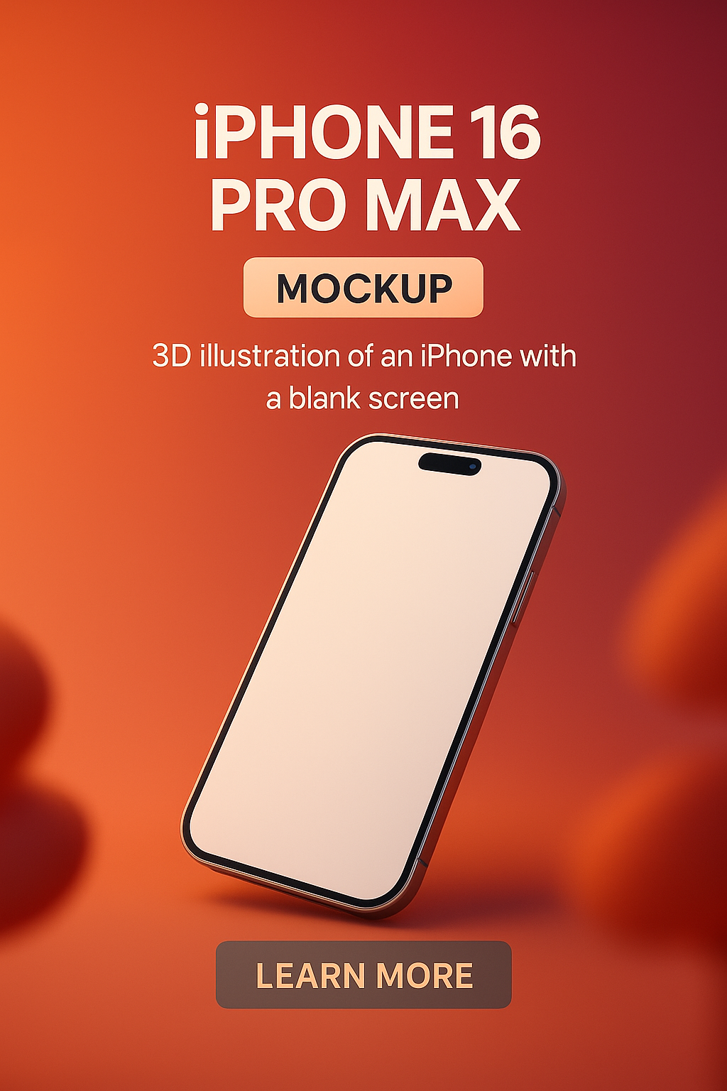 3D Mockup of iPhone 16 Pro Max with Blank Screen