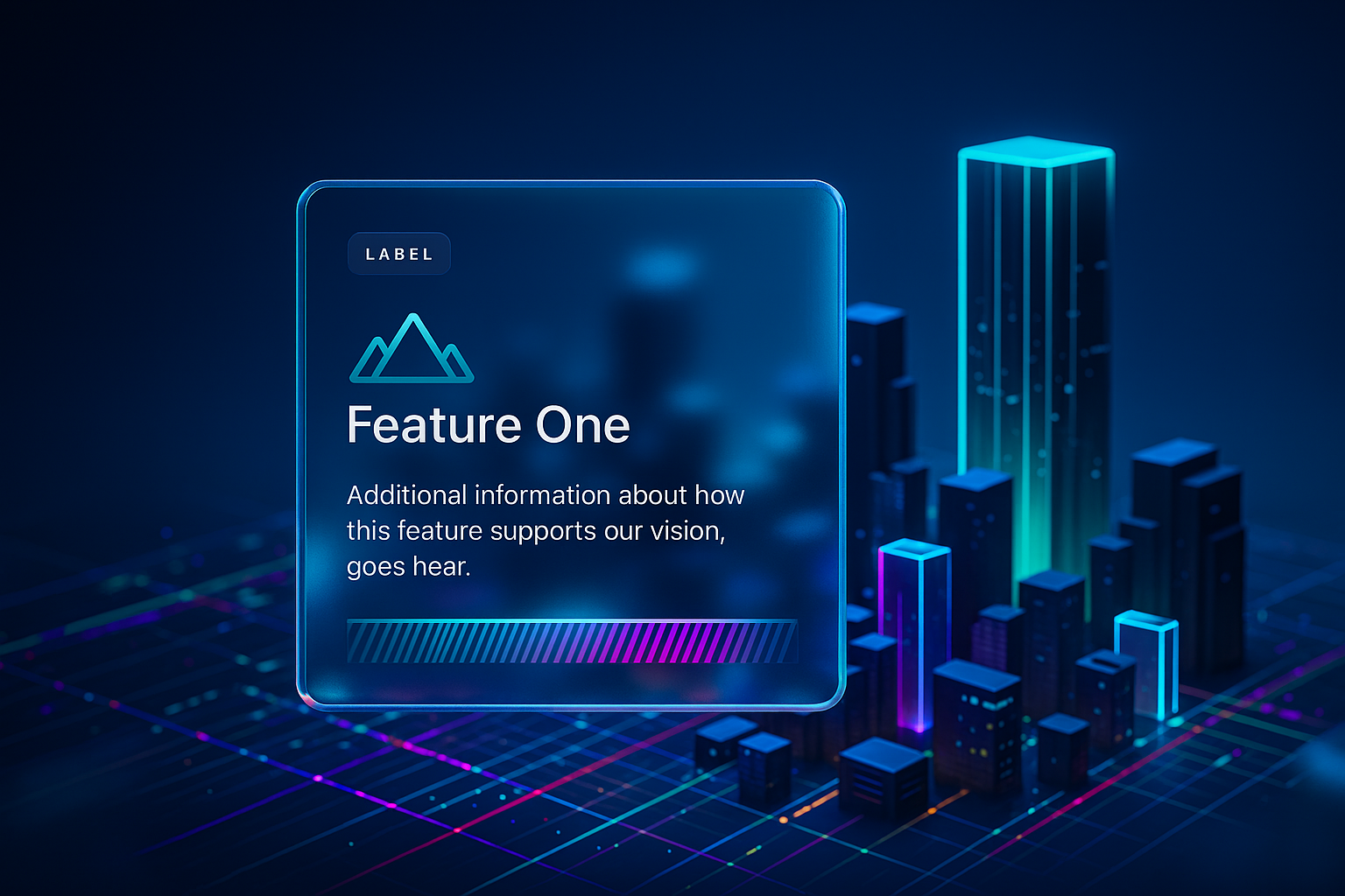 /Collection: /by davooda/Type: PNG/A vibrant 3D illustration of a miniature cityscape with illuminated buildings, featuring a translucent information block overlay that highlights key features.