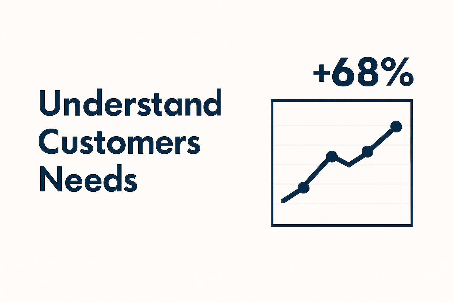 Informative infographic illustrating a significant increase in understanding customer needs, featuring a line graph and bold typography suitable for business presentations.
