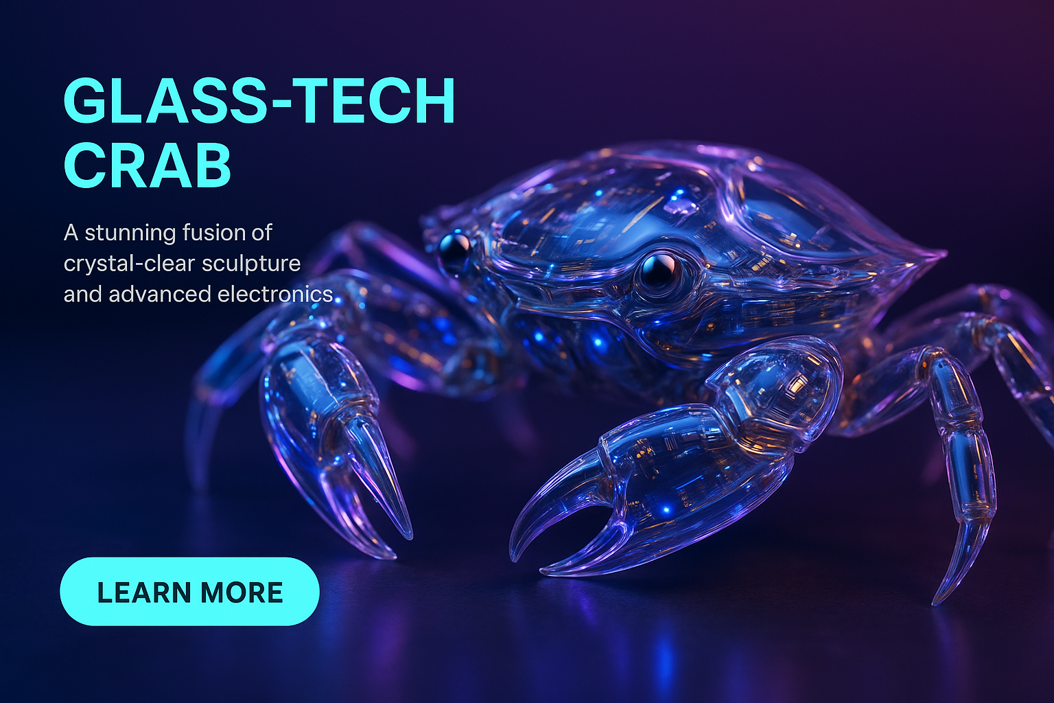 Hyperrealistic Glass-Tech Crab with Glowing Electronics