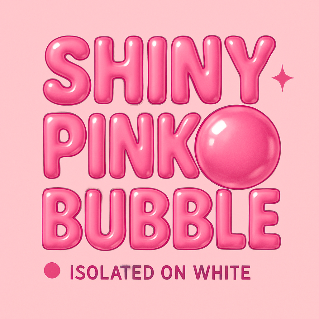 Vibrant and playful design featuring 3D shiny pink bubble typography on a soft pink background, ideal for whimsical branding or playful marketing.