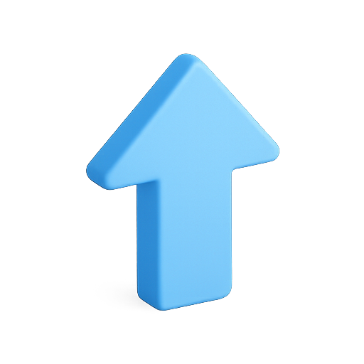 3D Glossy Blue Arrow Icon Representing Upward Direction
