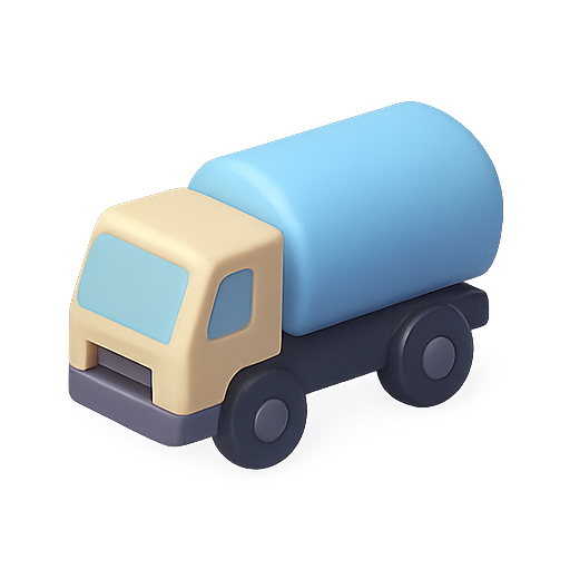 3D-rendered toy truck design featuring a blue cylindrical container and a beige cab, ideal for children's playtime and educational purposes.