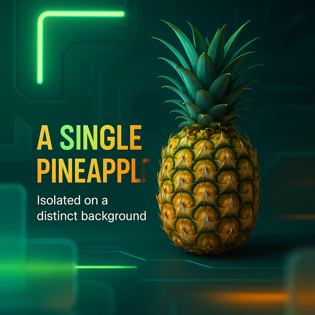 A vibrant 3D render of a single pineapple isolated against a futuristic backdrop, showcasing detailed textures and colors, ideal for food-related graphics or modern design.