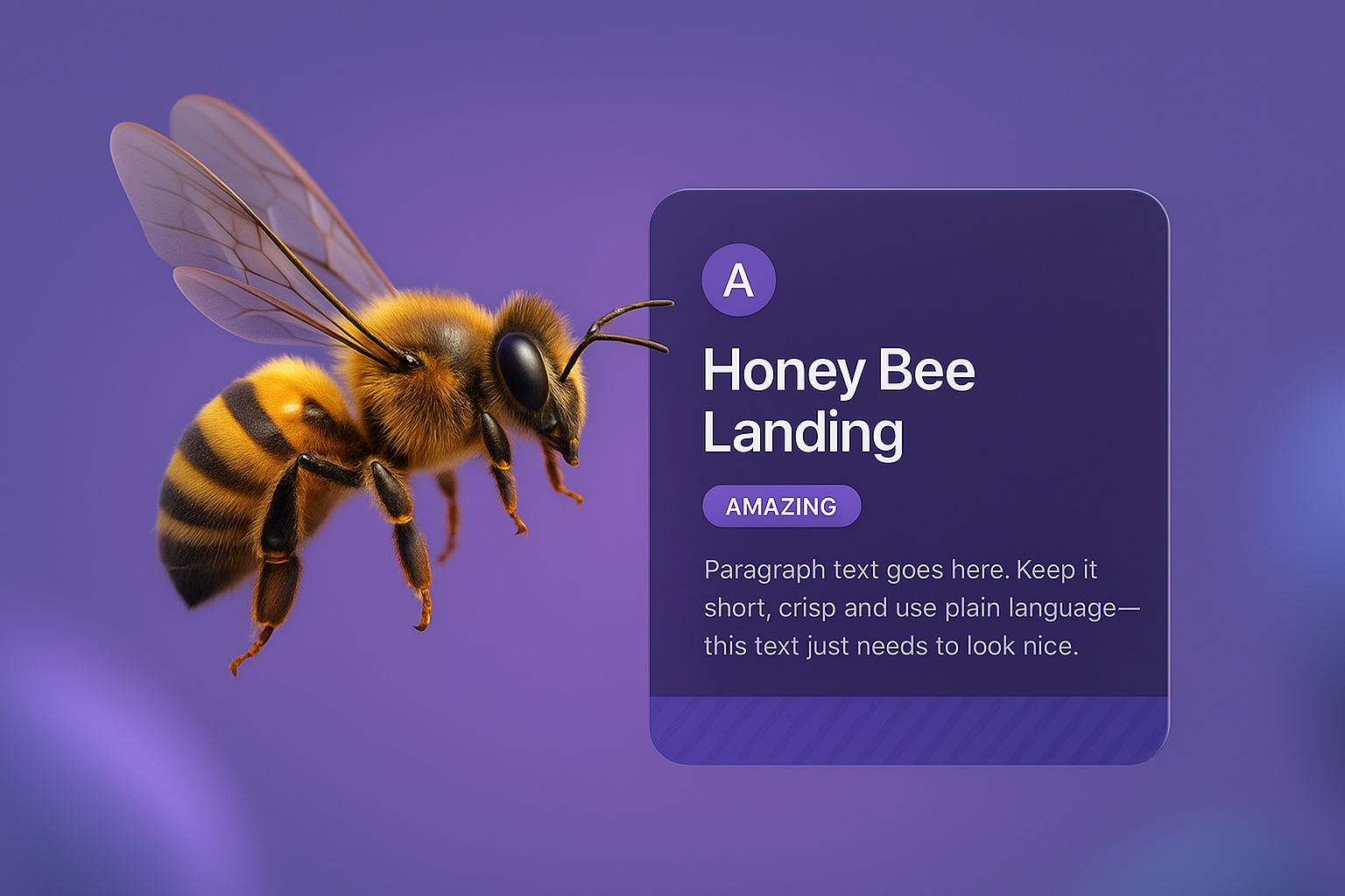 /Collection: /by davooda/Type: PNG/A detailed 3D illustration of a honey bee landing on a smooth gradient background. The design includes a text box with a title and a label, creating a cohesive visual.