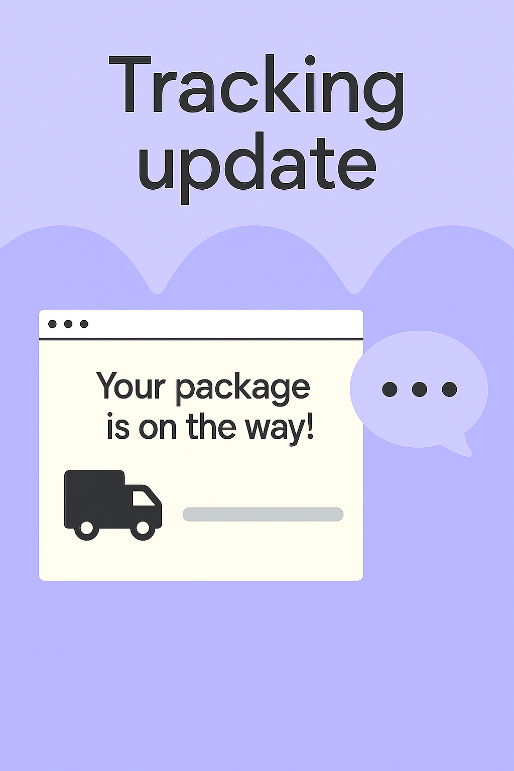 Modern graphic depicting a package tracking update, featuring a simple design with a delivery truck icon, ideal for e-commerce notifications and customer updates.