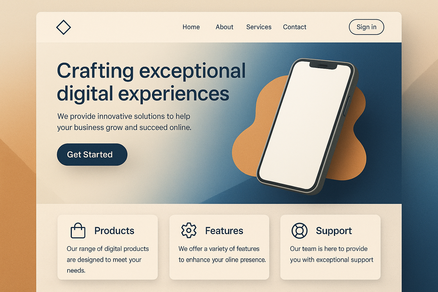 /Collection: /by davooda/Type: PNG/This image showcases a creative landing page design featuring a sleek mobile phone mockup, vibrant color blocks, and structured content sections for products and features.