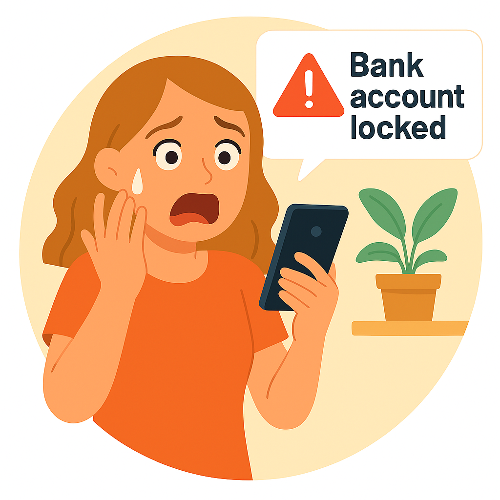 Illustration of a Woman Reacting to a Locked Bank Account Notification
