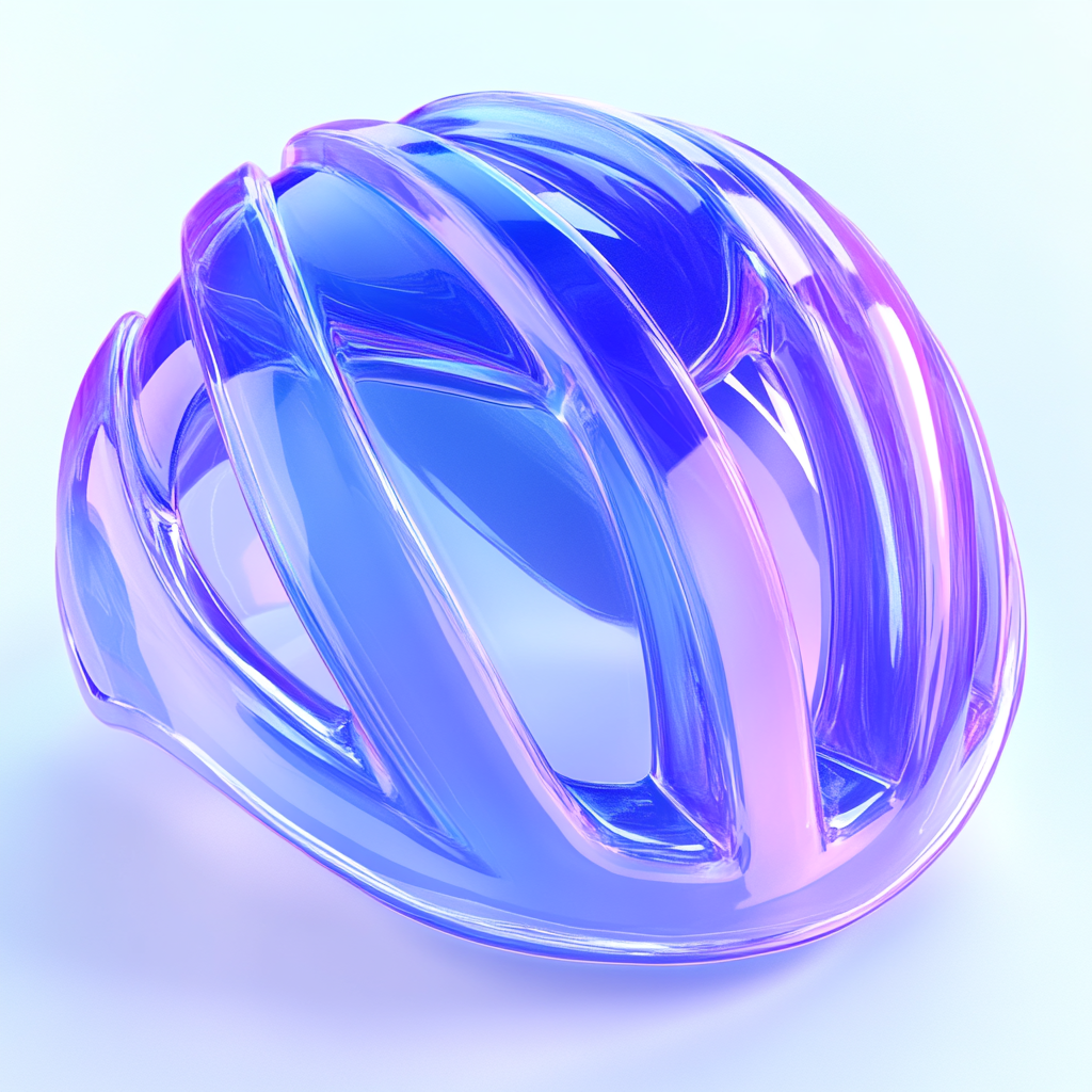 A sleek, contemporary helmet rendered in a transparent gradient, showcasing a blend of blue and pink hues. Ideal for showcasing innovative safety gear in marketing and product design.
