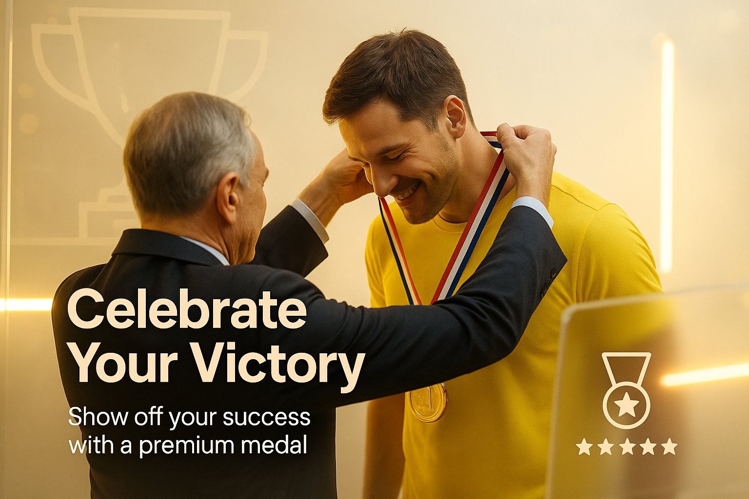 Celebratory Image Featuring a Winner with a Medal and Bright Background