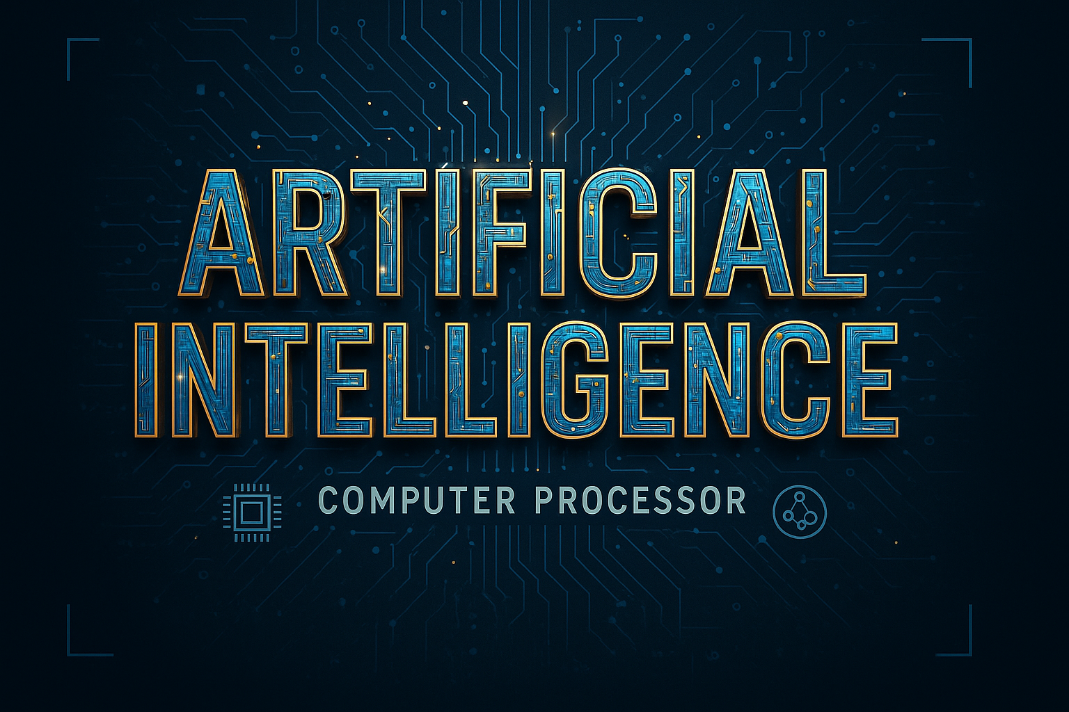 Modern graphic design showcasing the concept of artificial intelligence with a computer processor theme, ideal for tech presentations or digital marketing.