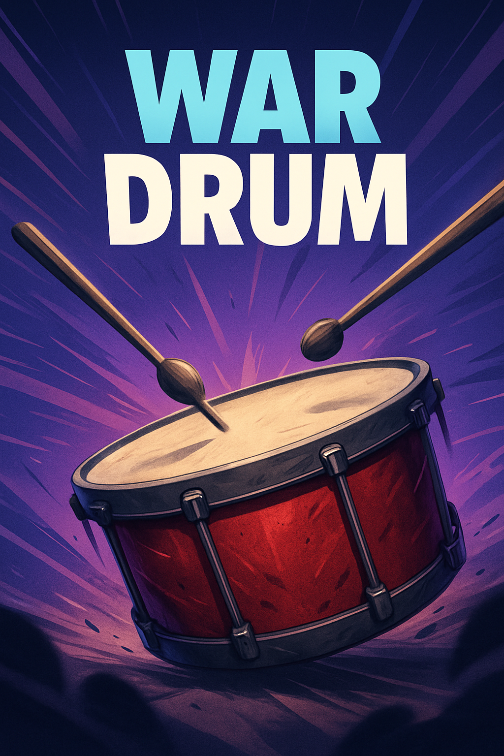 A striking illustration of a war drum, featuring dynamic lines radiating from the center. The bold title 'WAR DRUM' stands out against a gradient background, creating an energetic atmosphere.