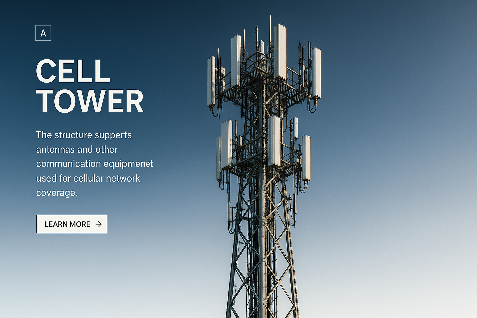 A high-resolution image of a cell tower against a gradient sky, featuring antennas and a clear text block for informative purposes. Ideal for web design.