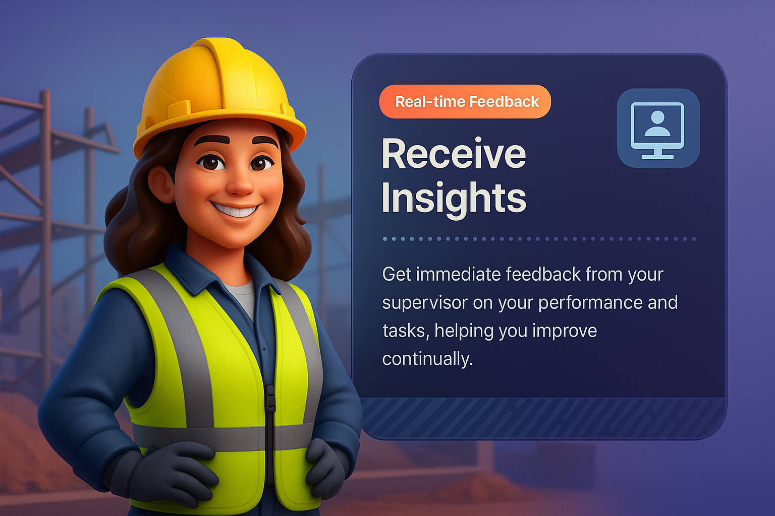 /Collection: /by davooda/Type: PNG/A cheerful female construction worker wearing PPE smiles confidently at the camera. The background features a construction site, enhancing the theme of safety and professionalism.