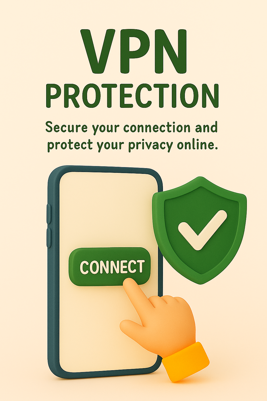 3D Illustration of VPN Protection Concept with Smartphone and Shield