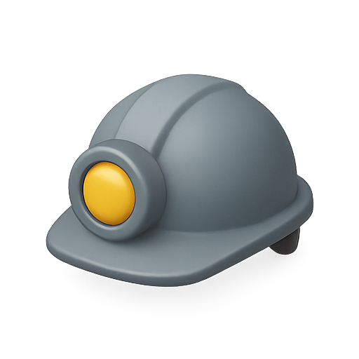 Stylized 3D illustration of a miner's helmet featuring a front light. Ideal for mining, safety, or construction-related themes in digital applications.