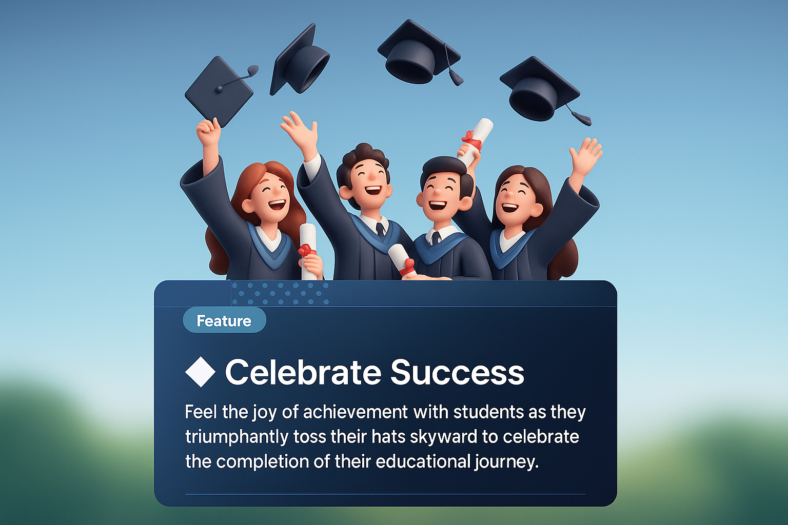 /Collection: /by davooda/Type: PNG/A vibrant scene of students joyfully celebrating their graduation by tossing their caps in the air. The image conveys a sense of achievement and success in education.