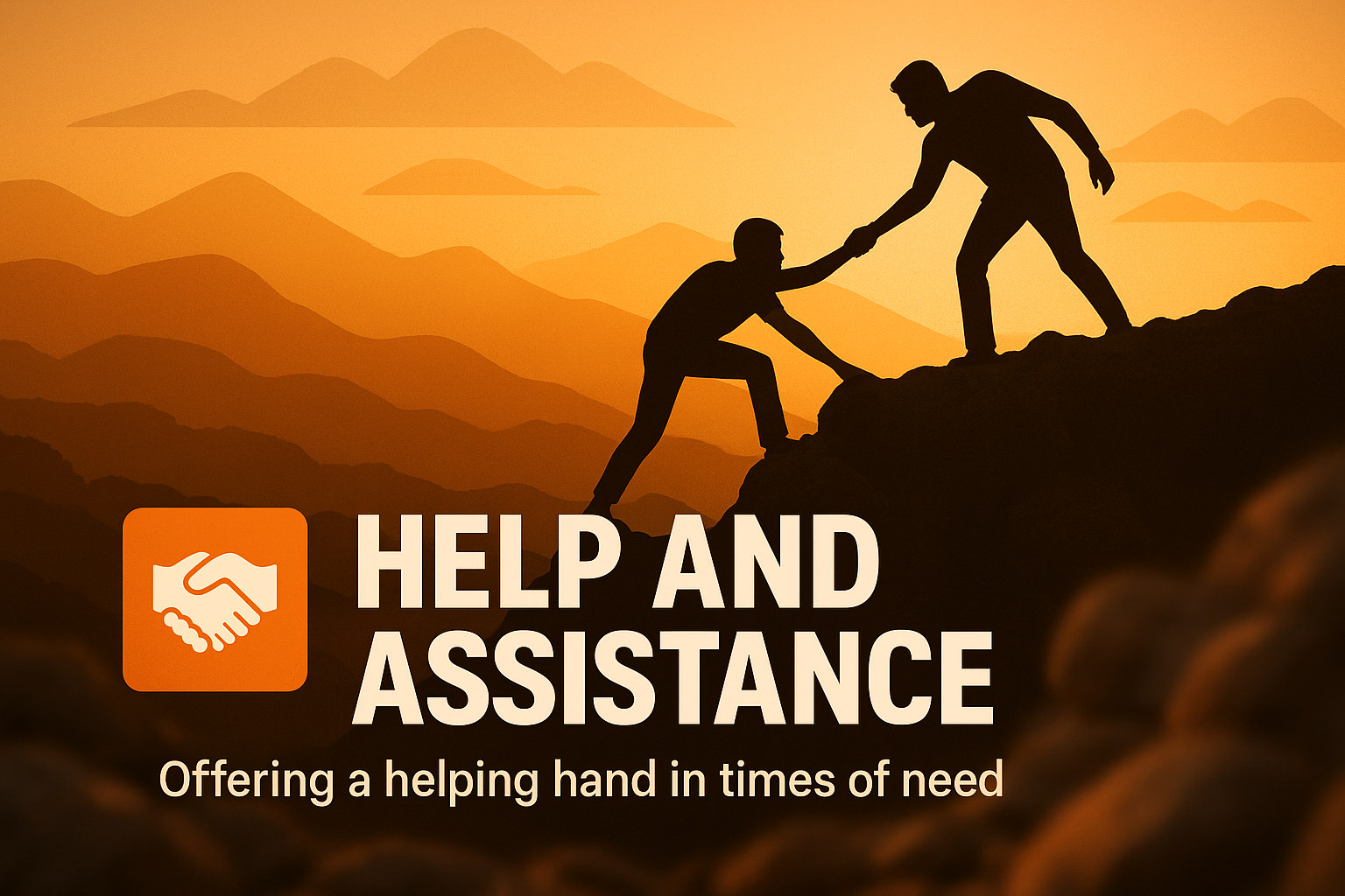 /Collection: /by davooda/Type: PNG/A motivational graphic showcasing two individuals in a supportive gesture against a warm, mountain backdrop. Ideal for campaigns promoting community support and assistance.