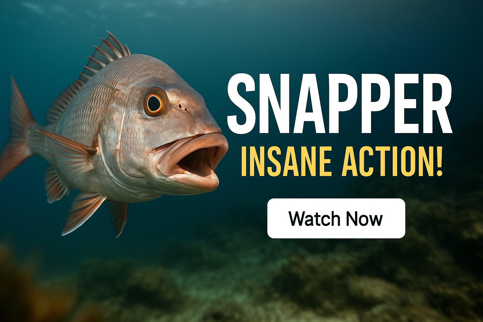 Vibrant underwater image featuring a snapper fish with bold text promoting action. Ideal for marine-related content or video promotions.