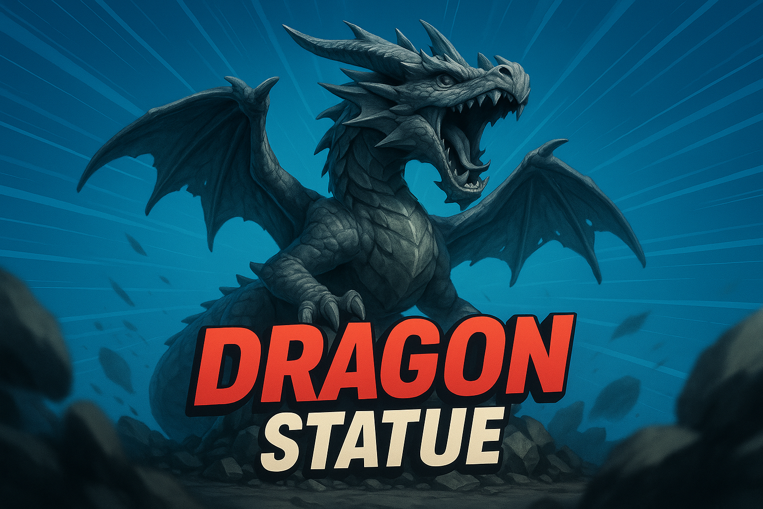 /Collection: /by davooda/Type: PNG/A striking illustration of a dragon statue, featuring dramatic angles and vibrant colors. The dragon appears fierce, surrounded by dynamic lines radiating from the center, enhancing the sense of movement.
