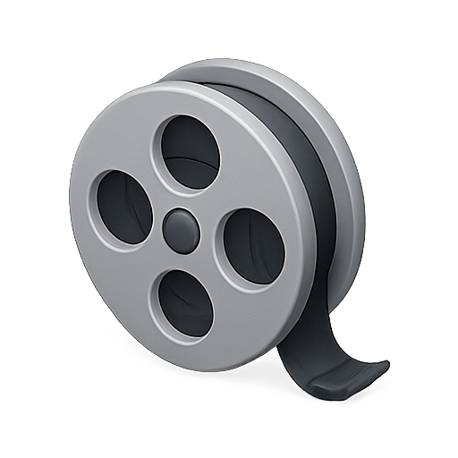 A high-quality graphic representation of a film reel, featuring a sleek design suitable for use in film-related projects, websites, or applications.