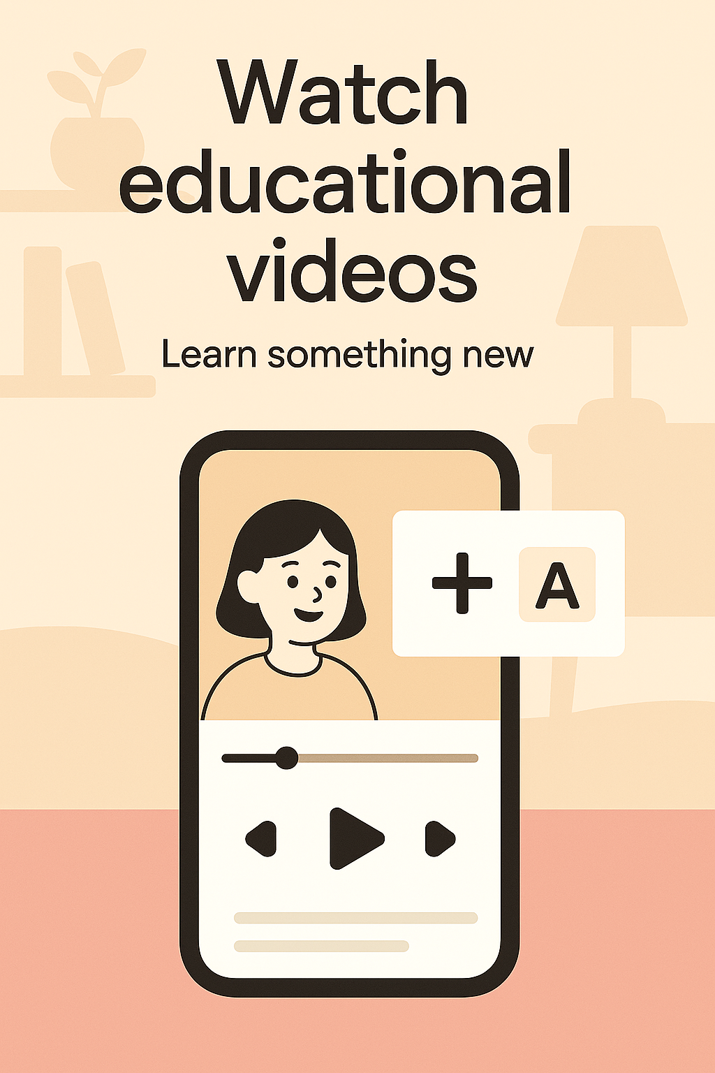 /Collection: /by davooda/Type: PNG/A modern and minimalistic graphic showcasing a smartphone displaying educational video content, aimed at encouraging viewers to learn something new. Ideal for social media or educational platforms.